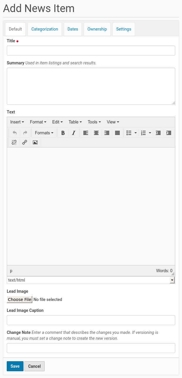adding news items add form