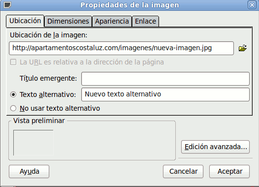 Ventana emergente "Propiedades de la imagen" (modificada)