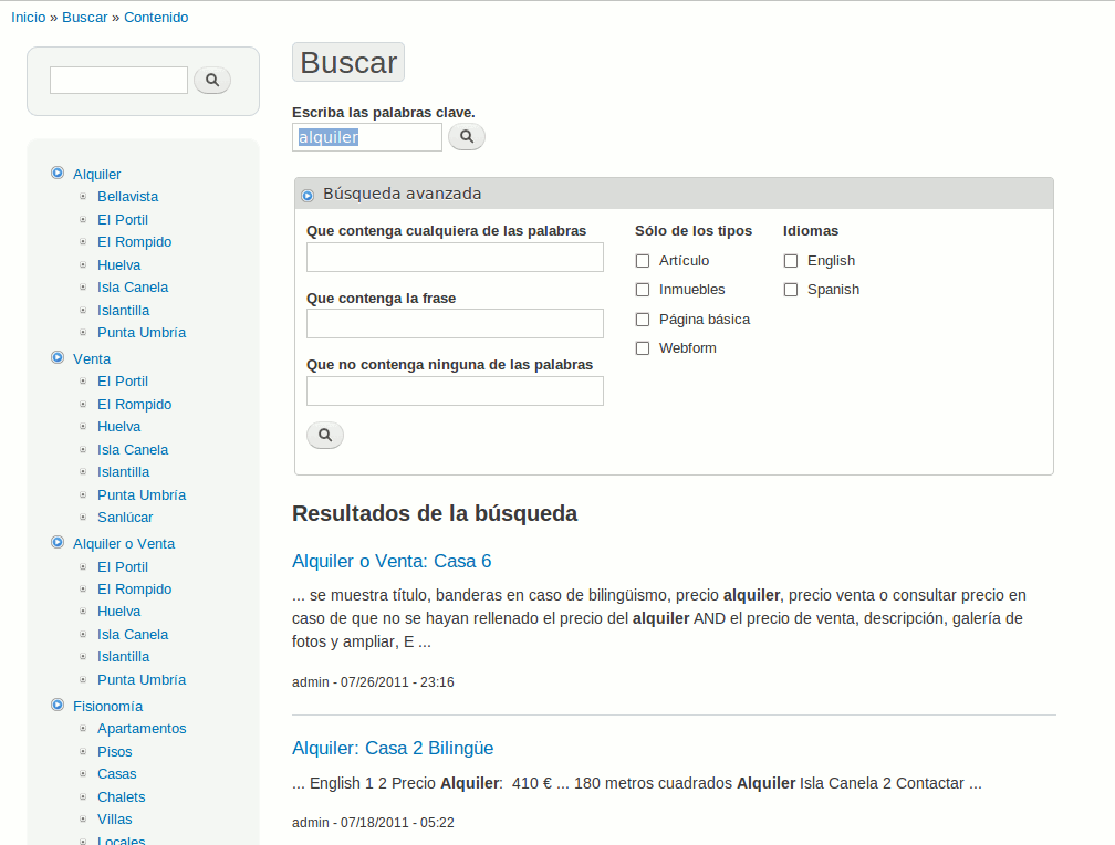 InmoDrupal: Búsquedas.